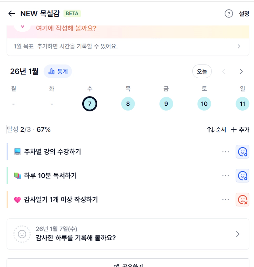 2️⃣ 1주차 목실감 작성하며 어땠는지 소감도 써보기 ✍🏻