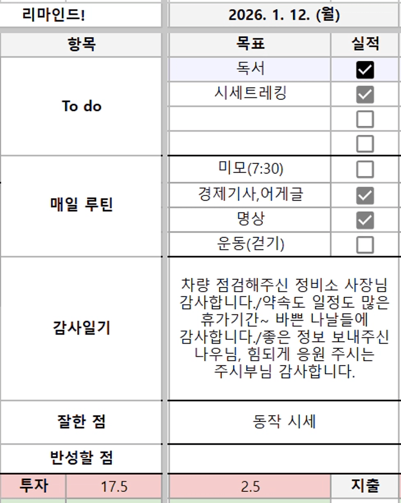 알찬 휴가 중에도 시세와 루틴을!! 멋지십니다 ^^ 행복한 시간 되세요^^