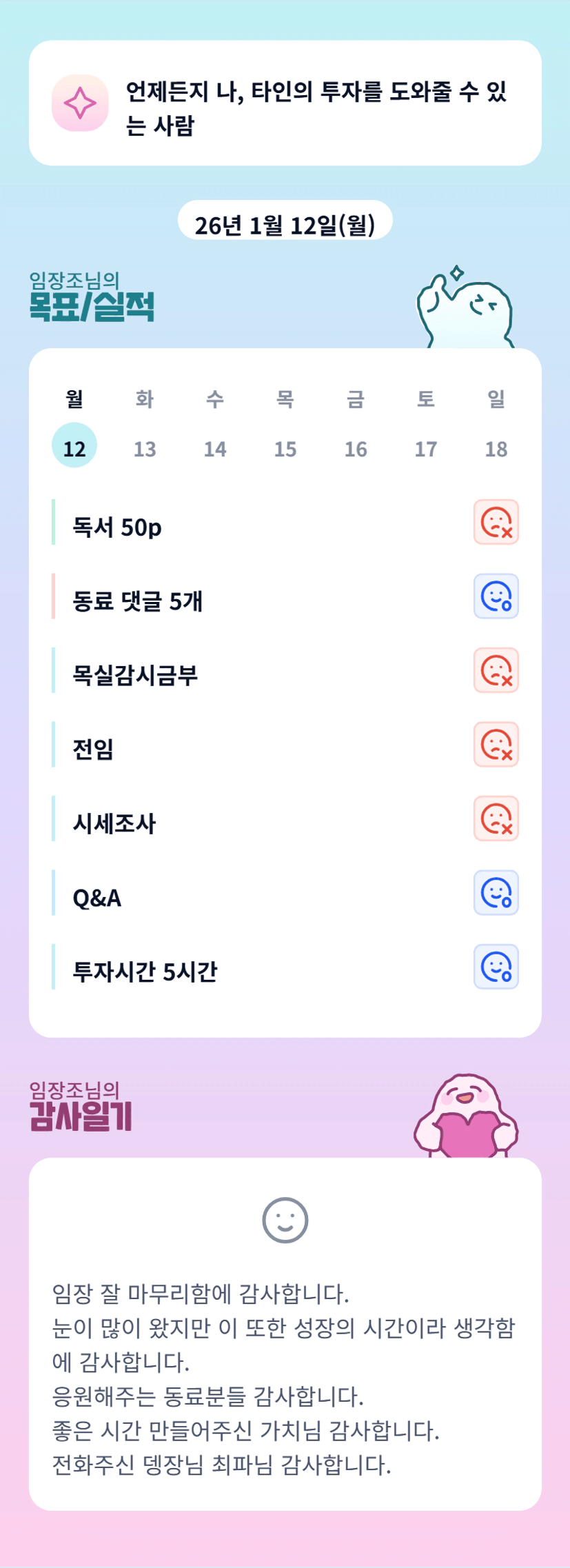장조님 3일 연속 임장 너무 수고하셨어요~~