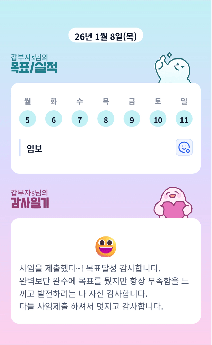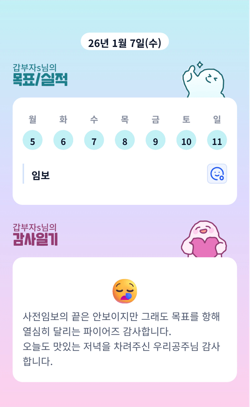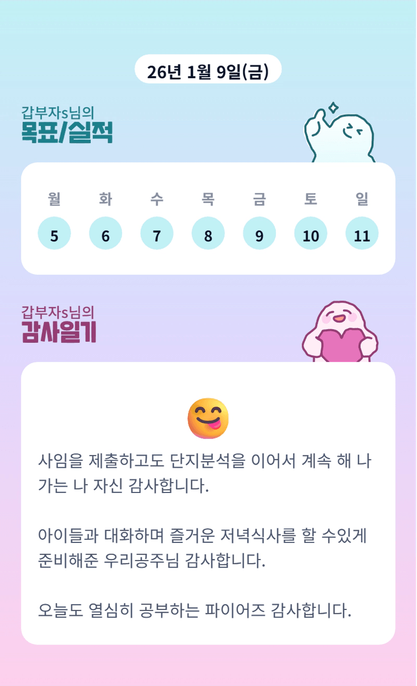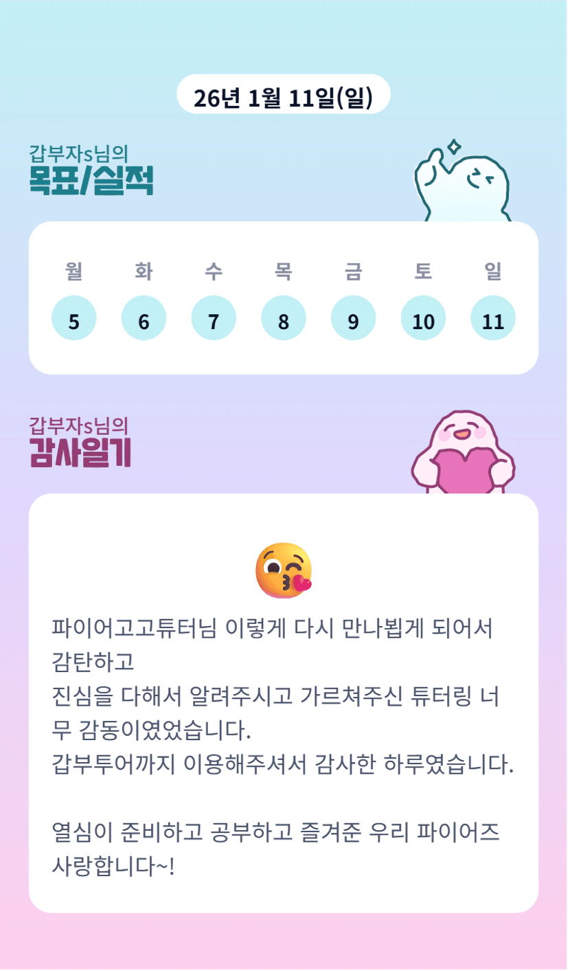 갑부님~ 정성 가득한 임보 발표 감사합니다! 분임 후에 갑부 투어로 단임을 일부 해 두어서 이번 주에 훨씬 수월하게 할 수 있었어요~ 갑부 투어 넘넘 감사합니다!