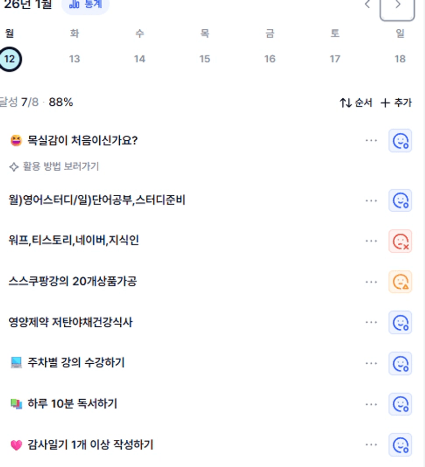 대체적으로 목표를 가지고 열심히 살려고 노력한 한주였다. 티비나 핸드폰시간을 줄이고 시간을 더 쪼개서 써야겠다.