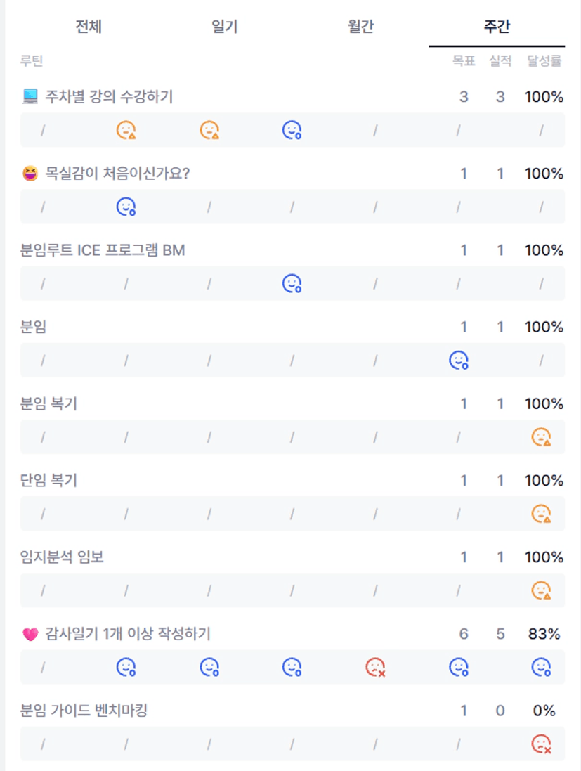 2️⃣ 이번 주 목실감을 작성하면서 느낀점과 더불어 한 주 스스로 어떻게 지냈는지 간단한 회고를 적어보아요 :)