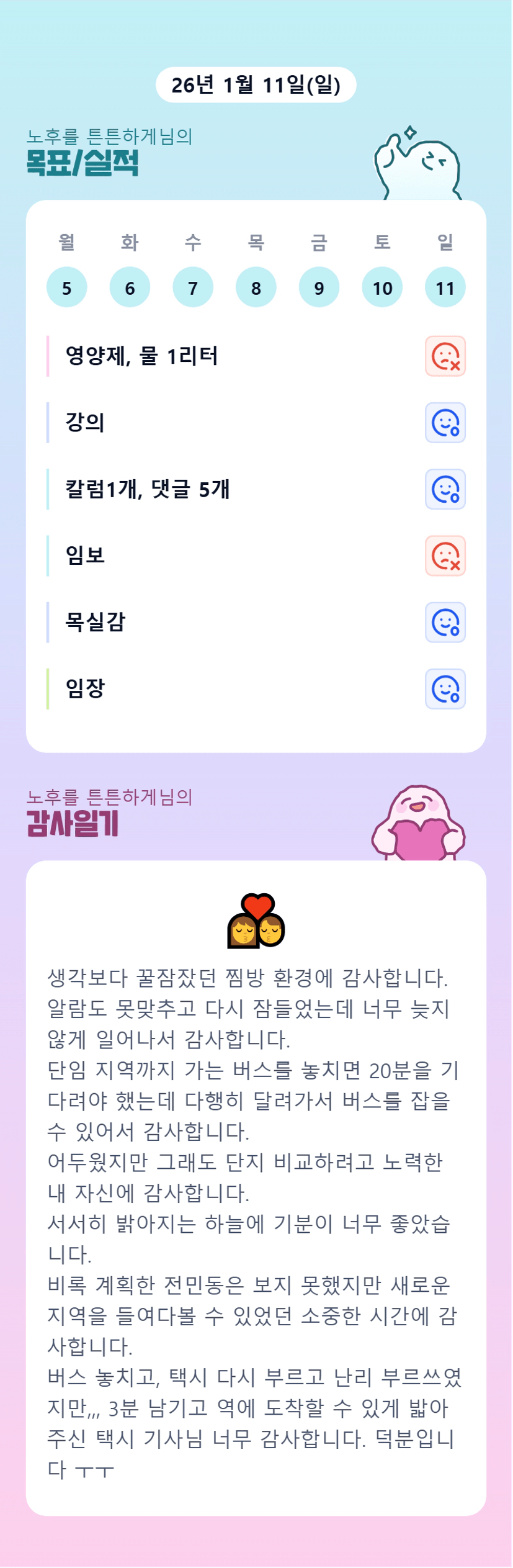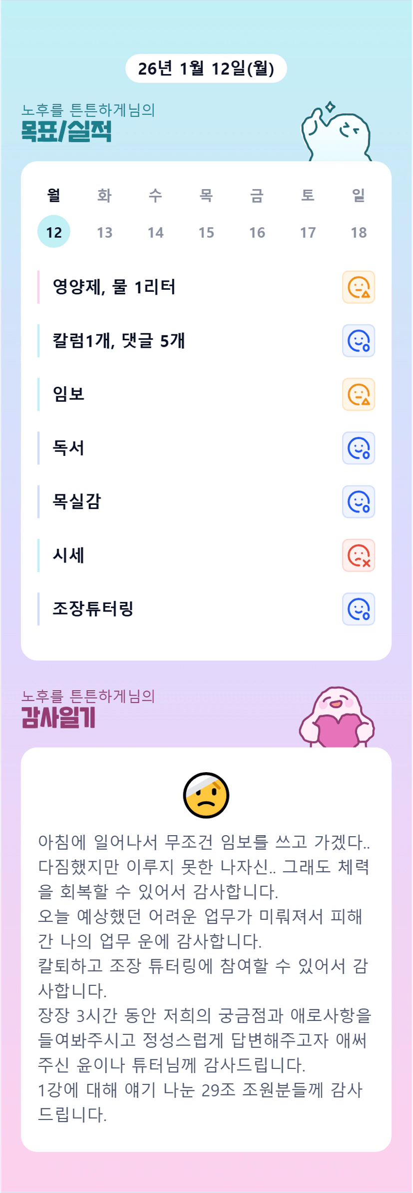 으윽~ 일요일에 난관이 많았네요ㅠㅠ 그래도 운이 다 해결해 주었네요 많이 뛰어다녔을 조장님의 몸이 오늘은 좀 쉬는 하루가 될수 있기를 바래봅니다^^