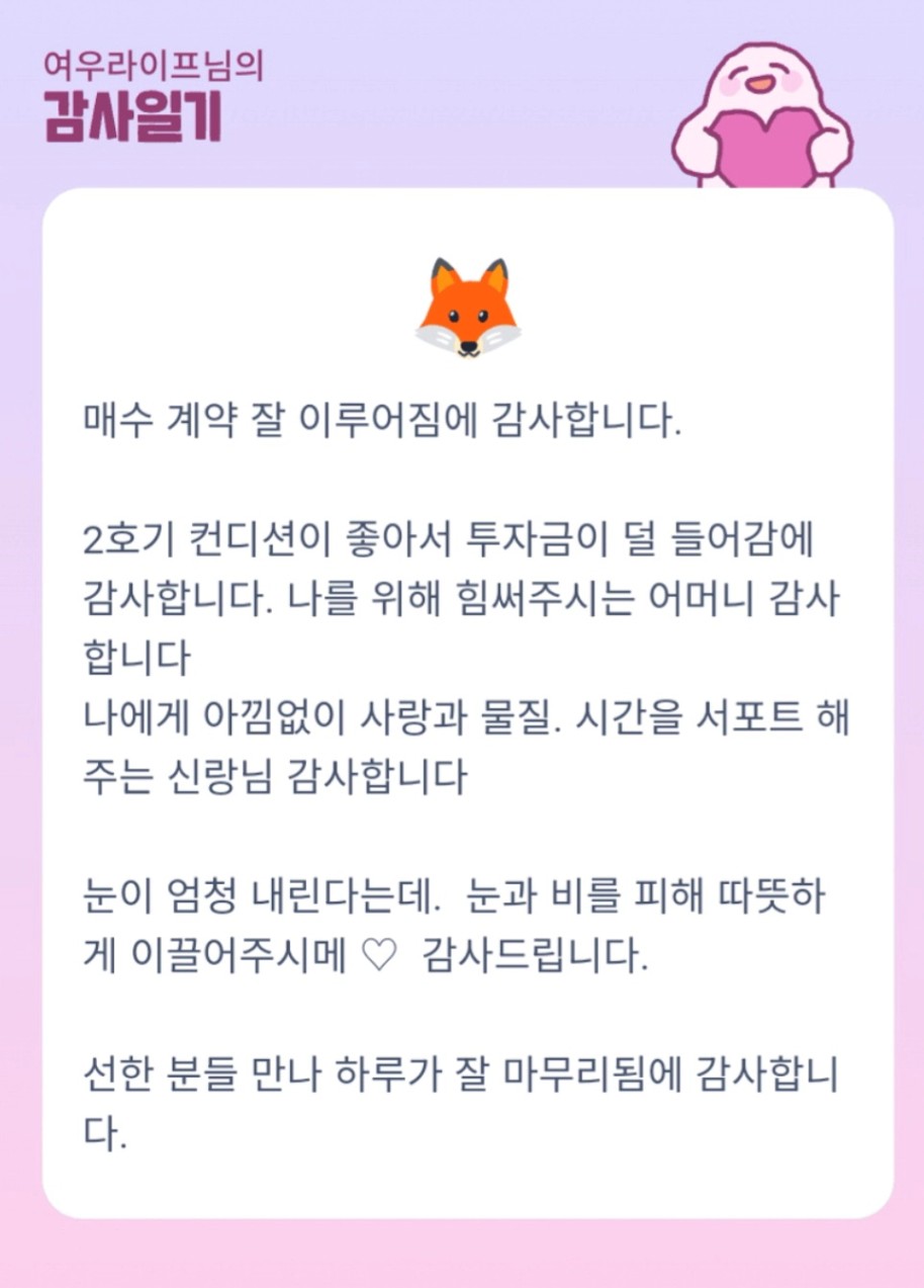 여우라이프님 투자 진심으로 축하드립니다 ^^ 최고!!!!!!!!!