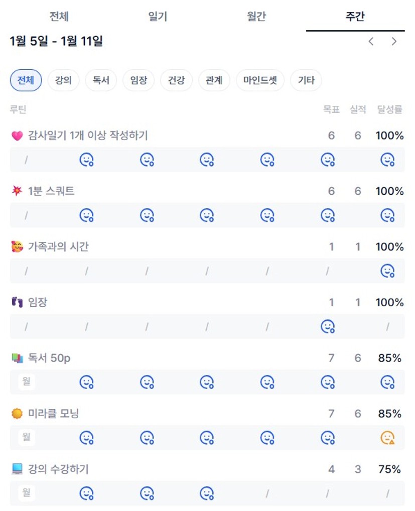 열기 이후부터 꾸준히 목실감을 작성했기에 특별히 어렵거나 힘든 점은 없었다. 목실감을 작성하며 매일의 목표를 수행해나가는 데 도움이 되었고 장기 목표를 늘 되새길 수 있어 좋았다. 다만, 가끔은 의무적으로 작성하게 될 때가 있어 반복적인 루틴에서 그치지 말고 목실감을 작성하는 의미에 대해 다시금 생각해보는 시간을 가져보아야겠다.