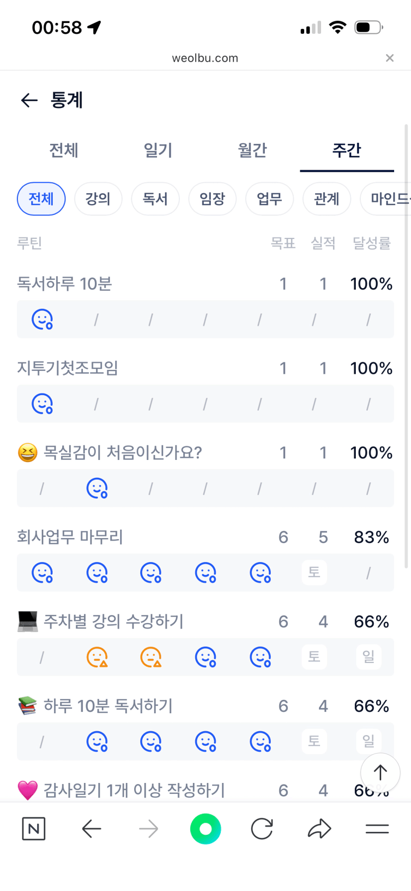 주말 목실감을 소홀했다..
