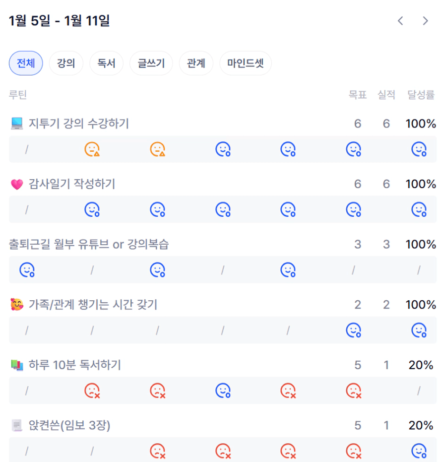 2️⃣ 이번 주 목실감을 작성하면서 느낀점과 더불어 한 주 스스로 어떻게 지냈는지 간단한 회고를 적어보아요 :)