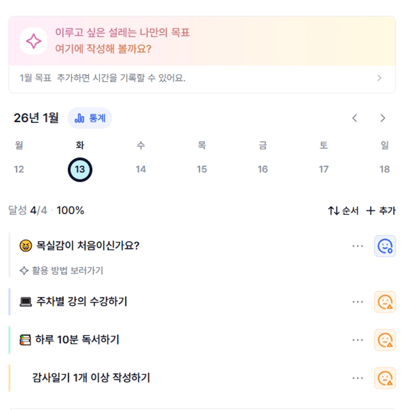 2️⃣ 1주차 목실감 작성하며 어땠는지 소감도 써보기 ✍🏻