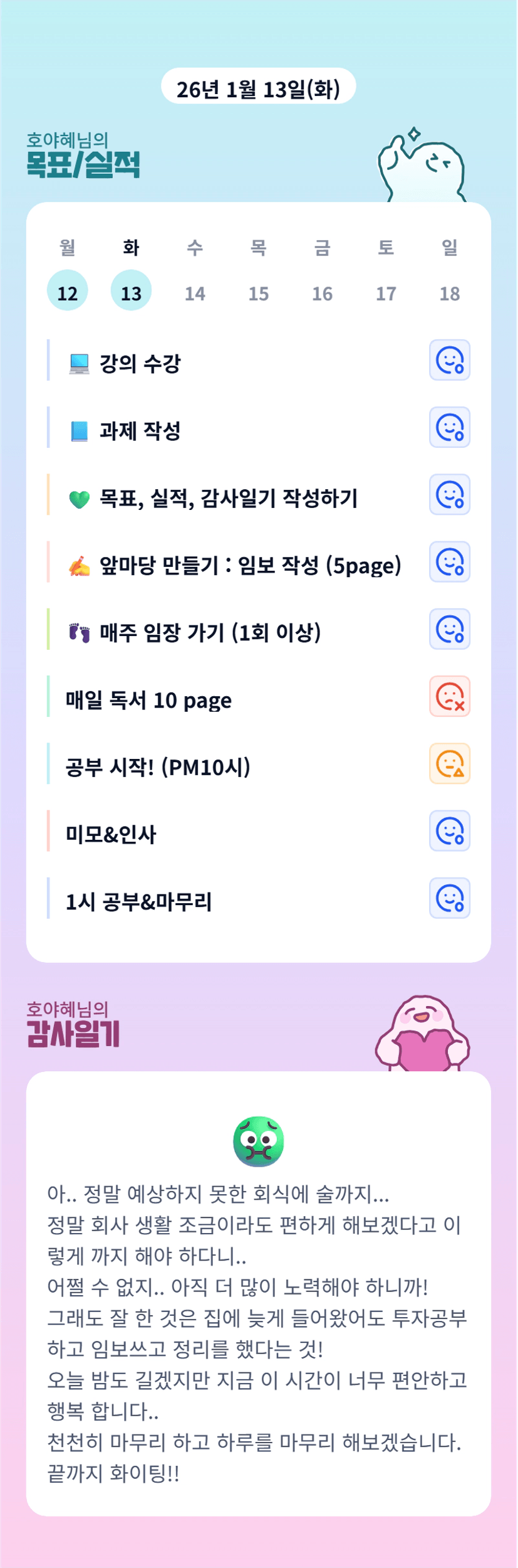 술마시고 임보쓰기! 호야님 의지력은 진짜 멋져용 매번 최선을 다하는 호야님👍👍👍