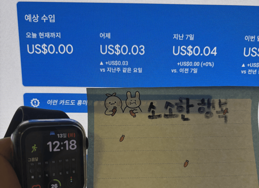 소수점 두자리가 되는 날까지 화이팅입니다!! 소소한 행복님의 수익이 소소하지 않아질때까지 응원하고 있겠습니다~!😊😊