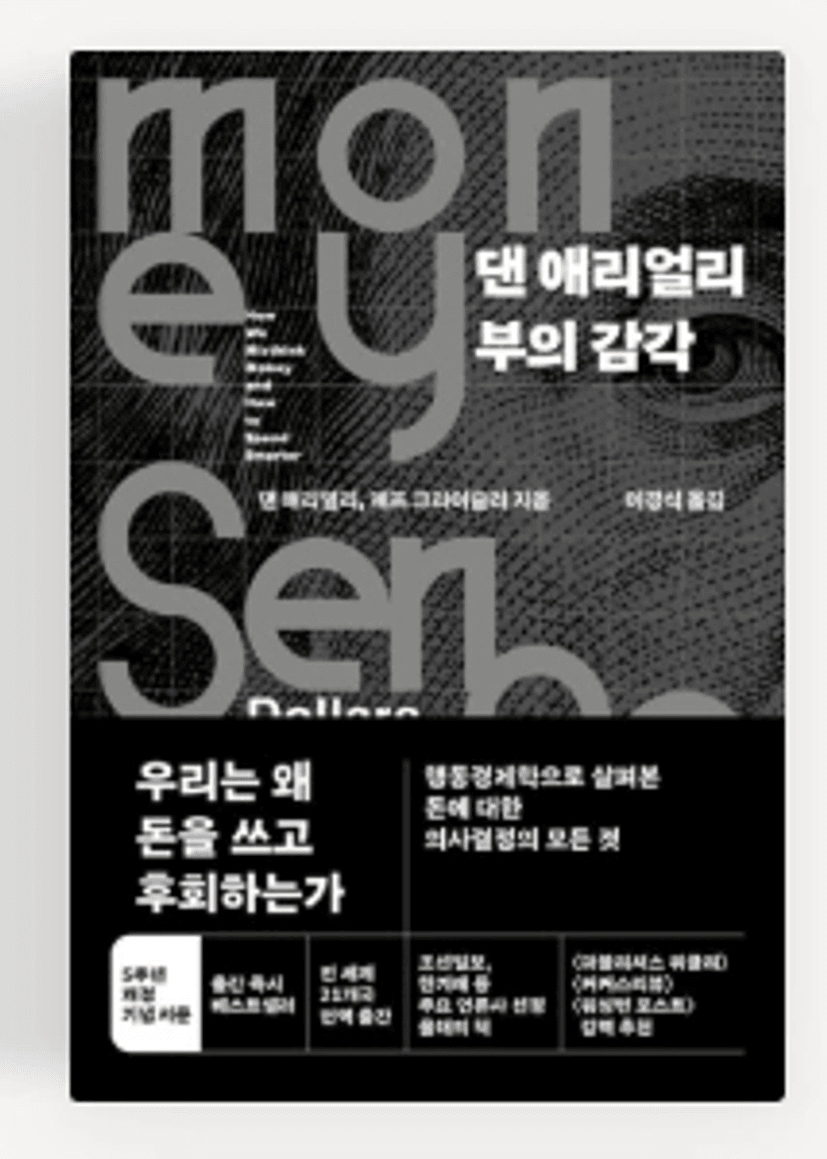 같은 작가의 책으로 사람들이 합리적으로 행동한다고 믿는 여러 상황에서 왜 반복적으로 비합리적인 선택을 하는지 실험과 사례를 통해 보여주는 책. 우리가 돈을 쓰고, 저축을 미루고, 순간의 욕구에 흔들리는 이유를 쓸모 있는 심리적 프레임으로 설명해줍니다.