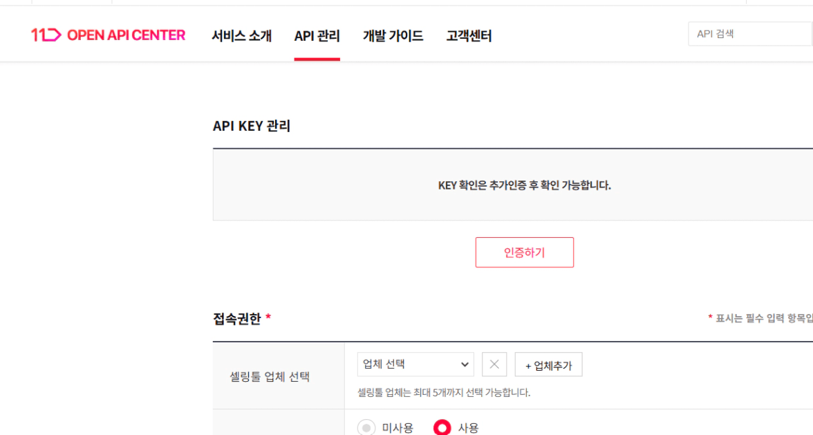 서비스 등록/확인에 들어가서 입력하는 내용이랑 그나마 비슷한게 API관리에 있길래 거기에 제 IP주소를 입력하고 나름대로 진행했는데 상품 등록시 오류가 뜨는 걸 봐서는 여기서 문제가 생긴 거 같습니다.