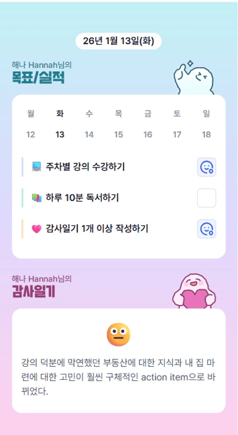 2️⃣ 1주차 목실감 작성하며 어땠는지 소감도 써보기 ✍🏻