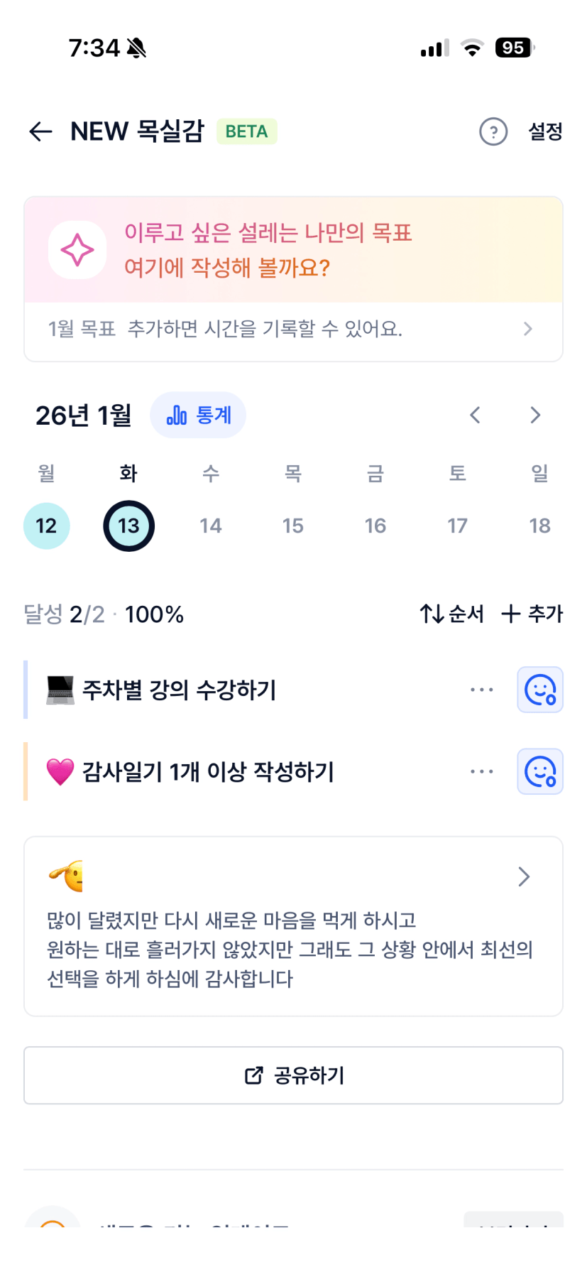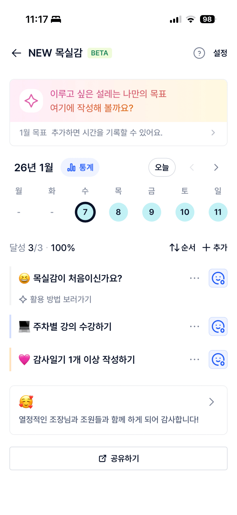 2️⃣ 1주차 목실감 작성하며 어땠는지 소감도 써보기 ✍🏻