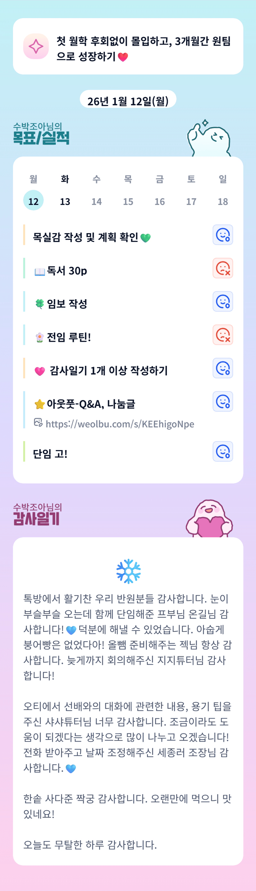 수부님 함께해서 감사했어요 :) 수부님 고민 되는 것들 모두 다 잘 되랏!!