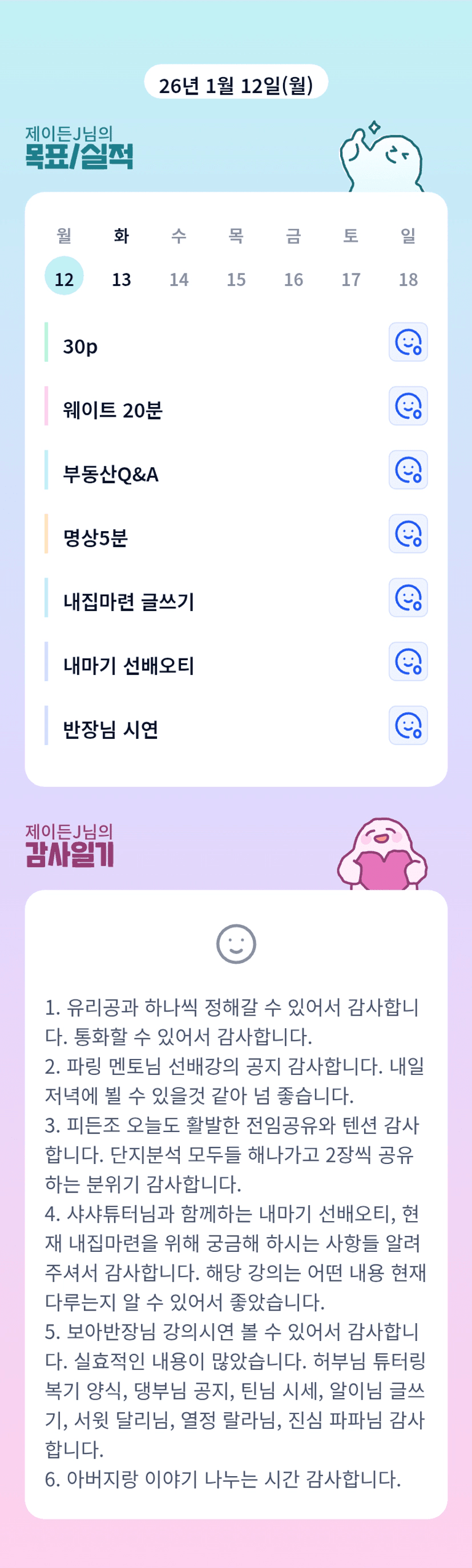 튜터님 일정이.... 우와! 어제도 수고하셨습니다! 항상 감사합니다!!
