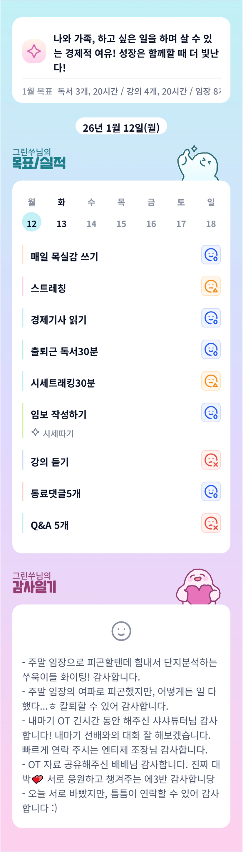 튜터님 함께 올뺌해주셔서 감사합니당! 오늘도 화이팅입니다🌱💚