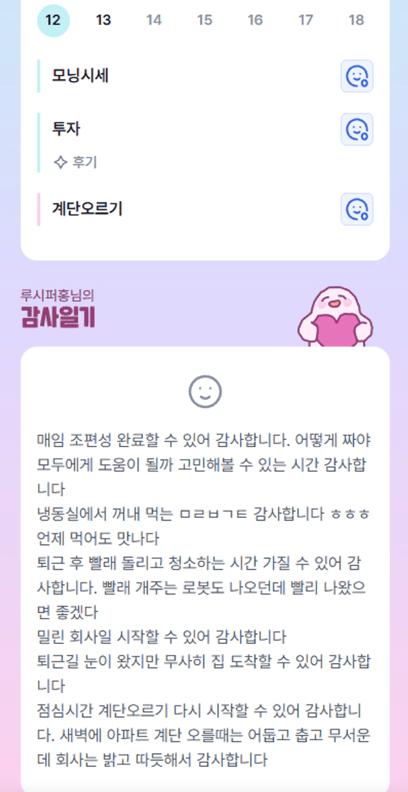 오 점심계단으로 바꿨군요ㅎㅎ 빠이팅 지켜보겠어욧👀 명란바게트 맛있겠다홍🩷