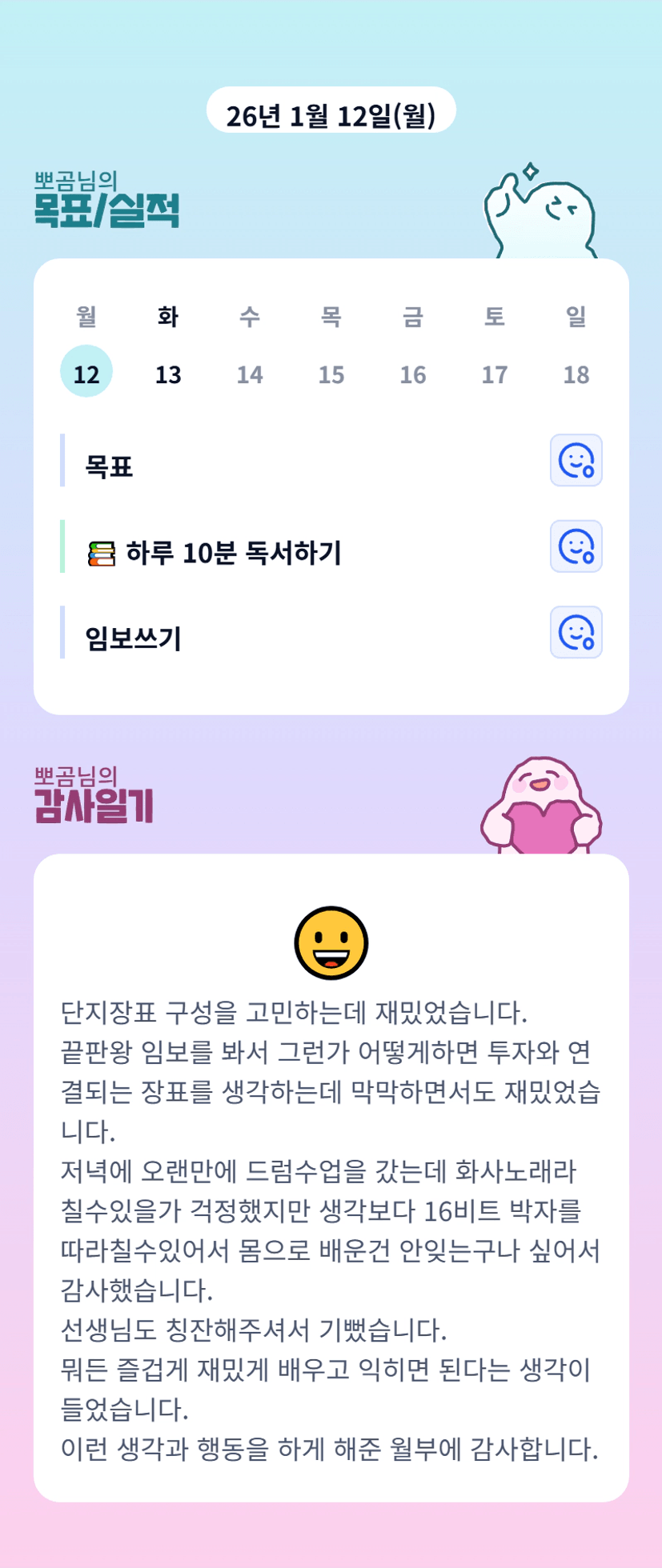 드럼과 임보까지 배움의 연속이었군요ㅎㅎ 뽀곰님 오늘도 화이팅입니다~😃