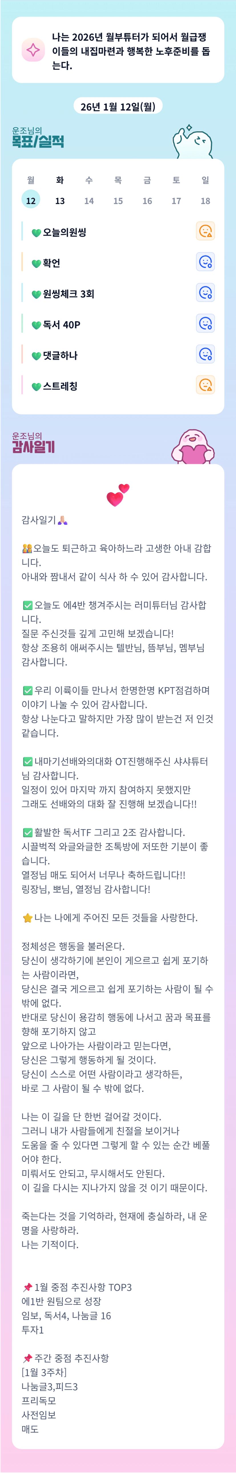 힘들어하는 동료들을 돕고, 때로는 함께 웃고 또 함께 울면서 해나가려고 합니다.