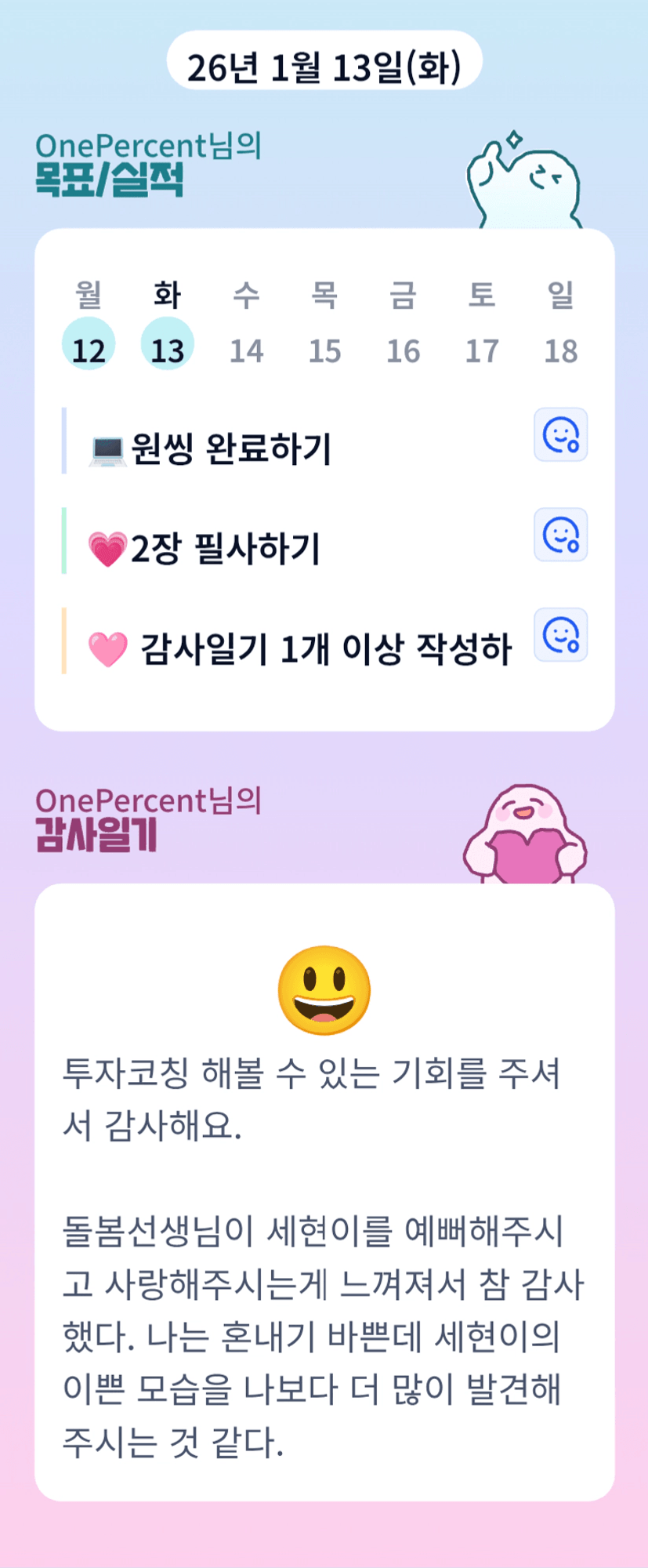 2️⃣ 1주차 목실감 작성하며 어땠는지 소감도 써보기 ✍🏻