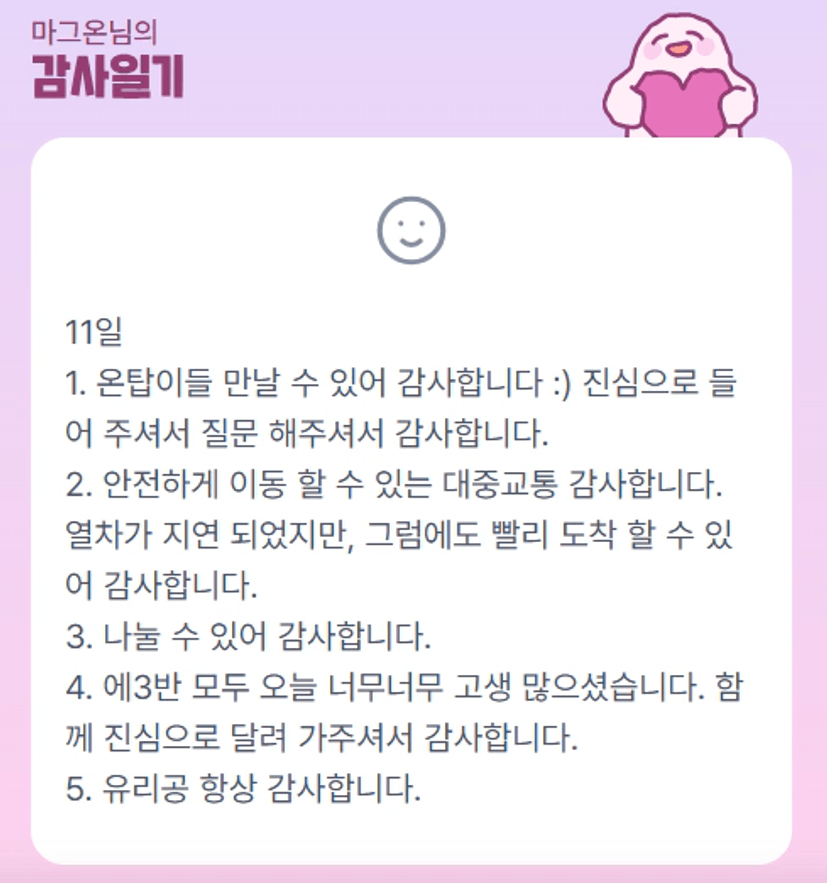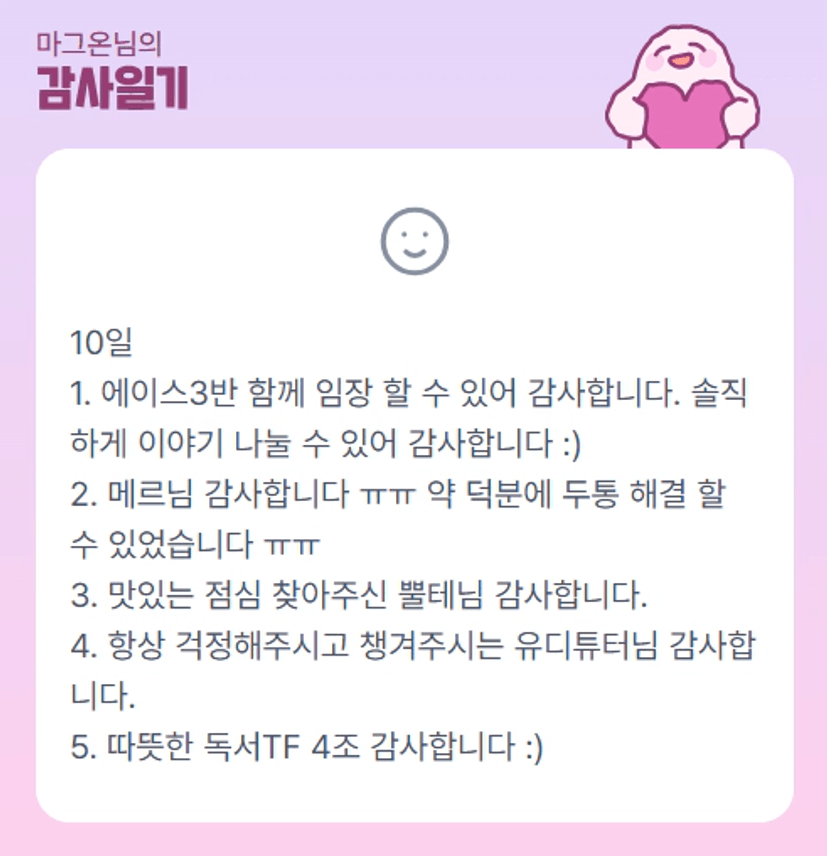 많은 가르침과 응원 덕분에 에너지를 가득 충전한 튜터링데이였습니다. 말로 다 표현 못 할 만큼 깊이 감사드려요.💖 잊지 않고 잘 간직하겠습니다!!