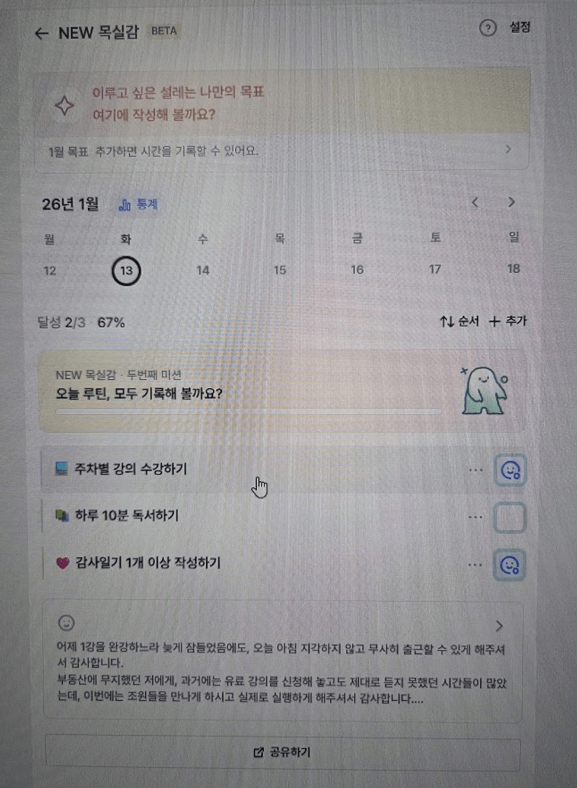 2️⃣ 1주차 목실감 작성하며 어땠는지 소감도 써보기 ✍🏻