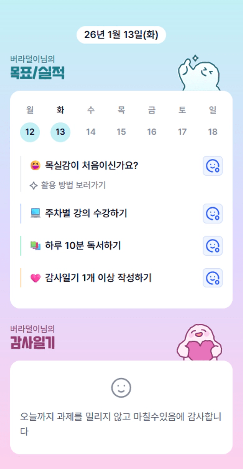 2️⃣ 1주차 목실감 작성하며 어땠는지 소감도 써보기 ✍🏻