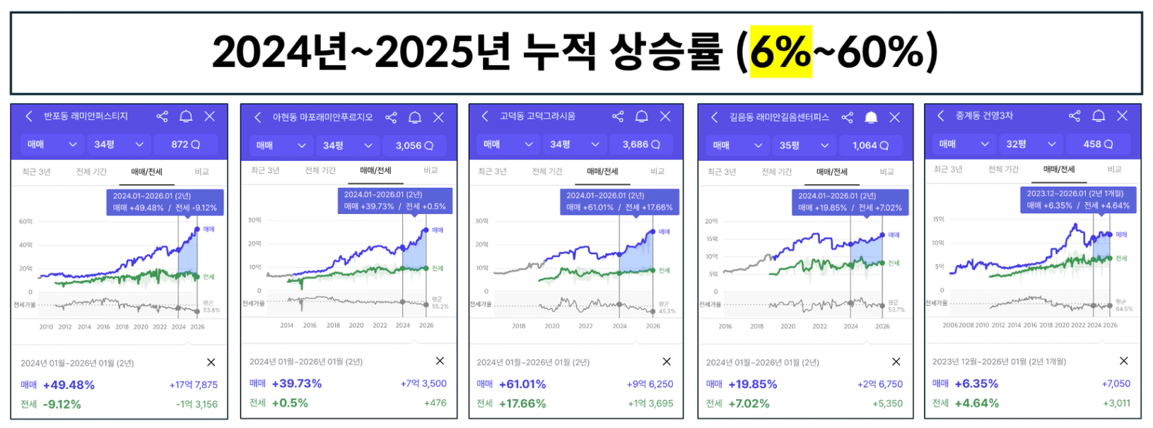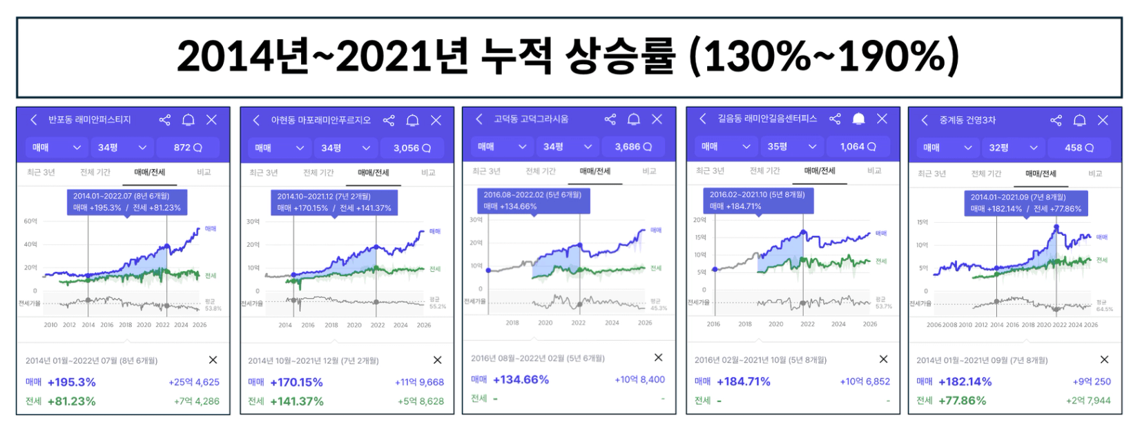 랜드마크 단지의 지난 시장 누적 상승률입니다.