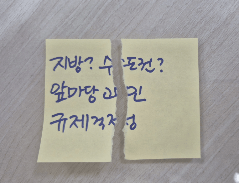 Q4. 1호기 투자, 지방투자를 더 이상 고민하지 말고 행동으로 옮겨야 함을 거듭 강조하고 있는데요. 그동안 1호기 투자를 위해 행동하는 것을 가로막았던 나의 편견 혹은 고민은 무엇이었나요? 포스트 잇에 그 내용을 적고 시원하게 찢어버리면서 오늘 이 시간부터 진짜 행동하는 투자자로 다시 시작해 봅시다!