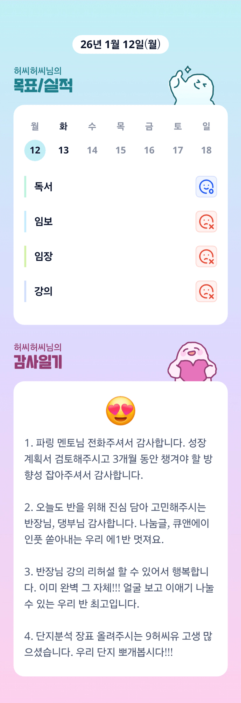 [에이스1반/독서TF 허씨허씨] 1.12 감사일기