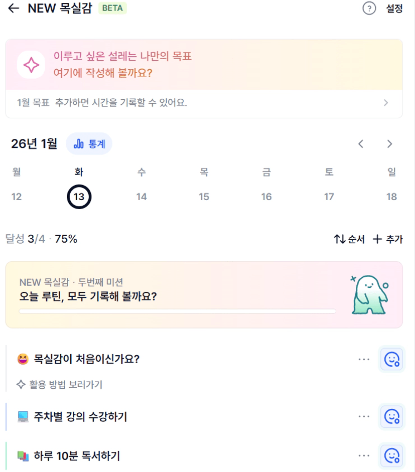 2️⃣ 1주차 목실감 작성하며 어땠는지 소감도 써보기 ✍🏻숙제마감이라 감사 일기써봤는데 동기부여도 되고 좋은것 같습니다. 앞으로 습관을 키워 기도와 감사를 기록에 남겨야 겠습니다.