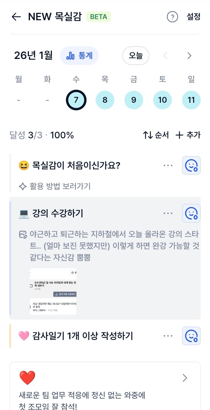 2️⃣ 1주차 목실감 작성하며 어땠는지 소감도 써보기 ✍🏻