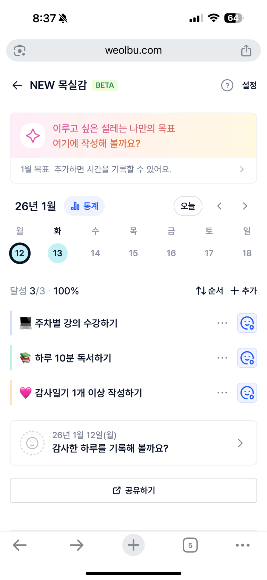 2️⃣ 1주차 목실감 작성하며 어땠는지 소감도 써보기 ✍🏻