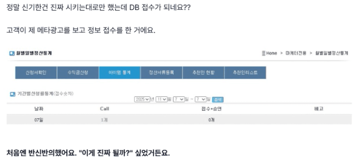 수강생 분이 전달주신 화면인데요, 결과당 비용이 1개의 건수가 얼마에 나오냐는 뜻입니다.