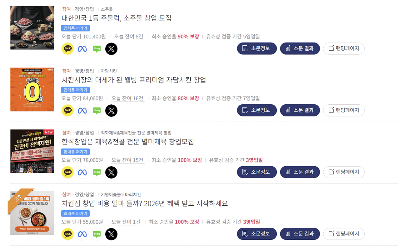 창업 DB 한 건당 받을 수 있는 수수료는 5만원 ~ 10만원입니다. 즉, 8천원 좀 넘게 광고비를 쓰고 6~7배 이상의 수익을 얻을 수 있다는 것입니다.