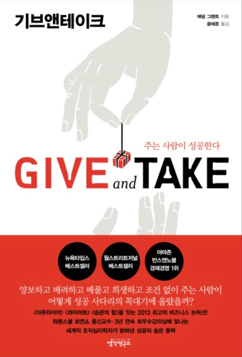 책 제목(책 제목 + 저자) : 기브앤테이크