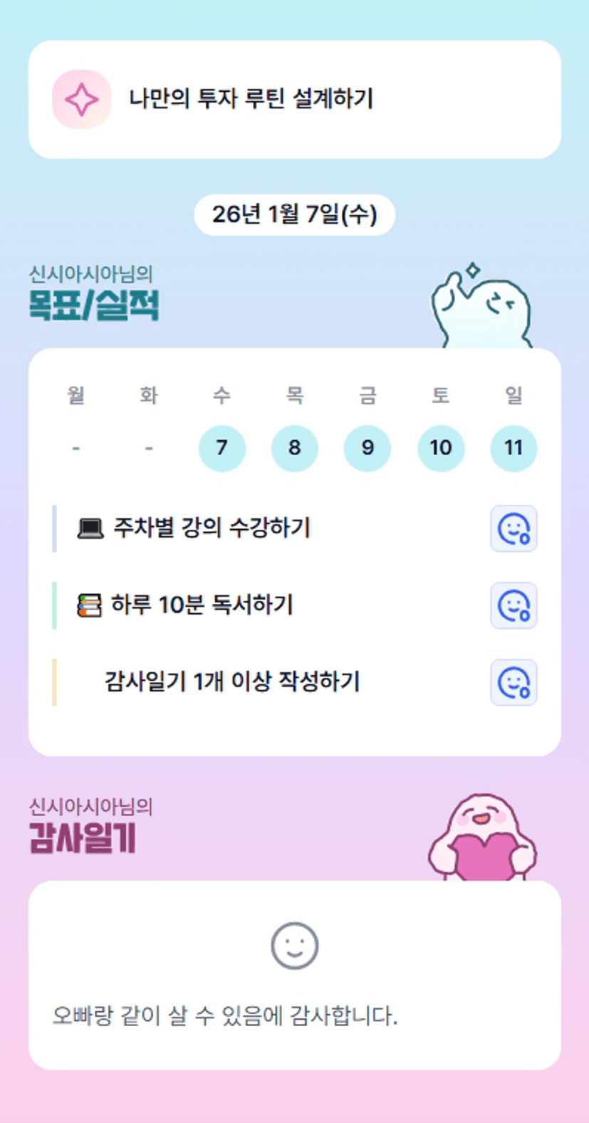 루틴을 매일 확인하고 실천 여부를 확인할 수 있어서 좋았습니다.