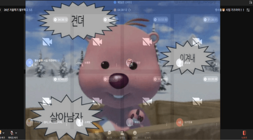 울 초단띠 잘하고계시져? 반장님 화이팅입니다 알럽 😀😀
