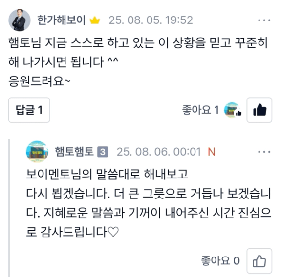 또한 제 성향에 맞게 말씀해주셔서 감사했습니다.