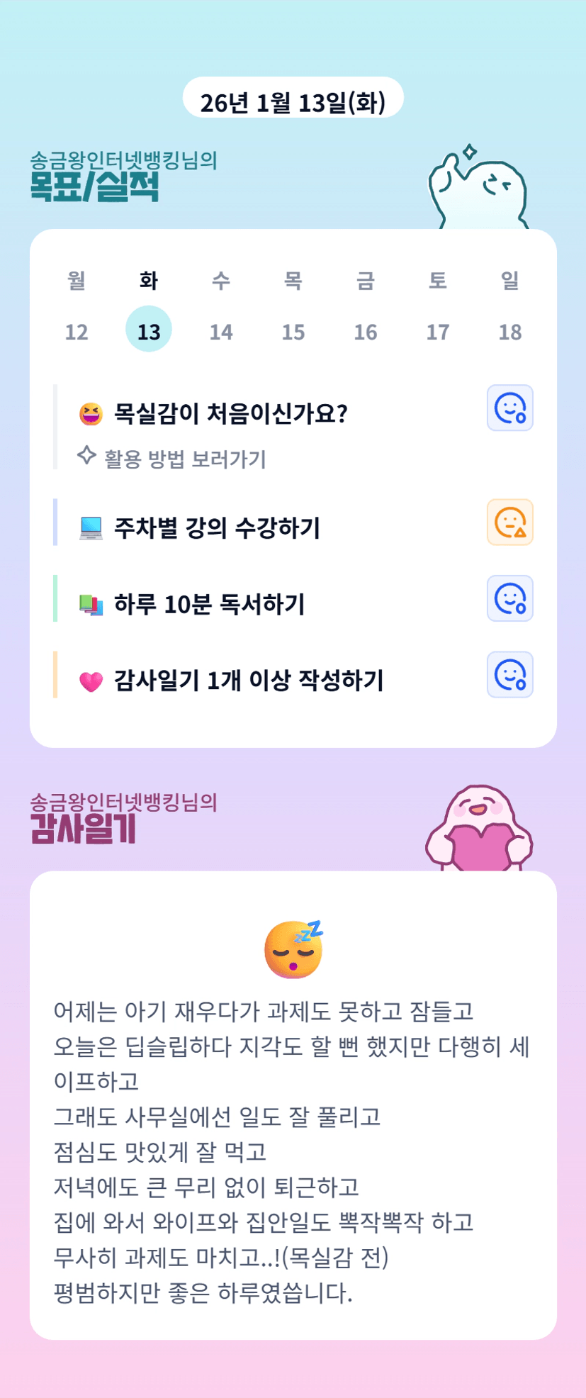 2️⃣ 1주차 목실감 작성하며 어땠는지 소감도 써보기 ✍🏻