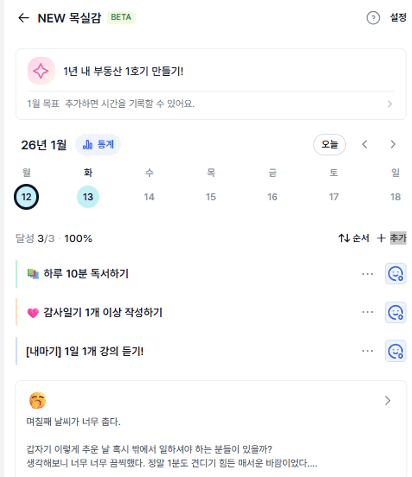 2️⃣ 1주차 목실감 작성하며 어땠는지 소감도 써보기 ✍🏻