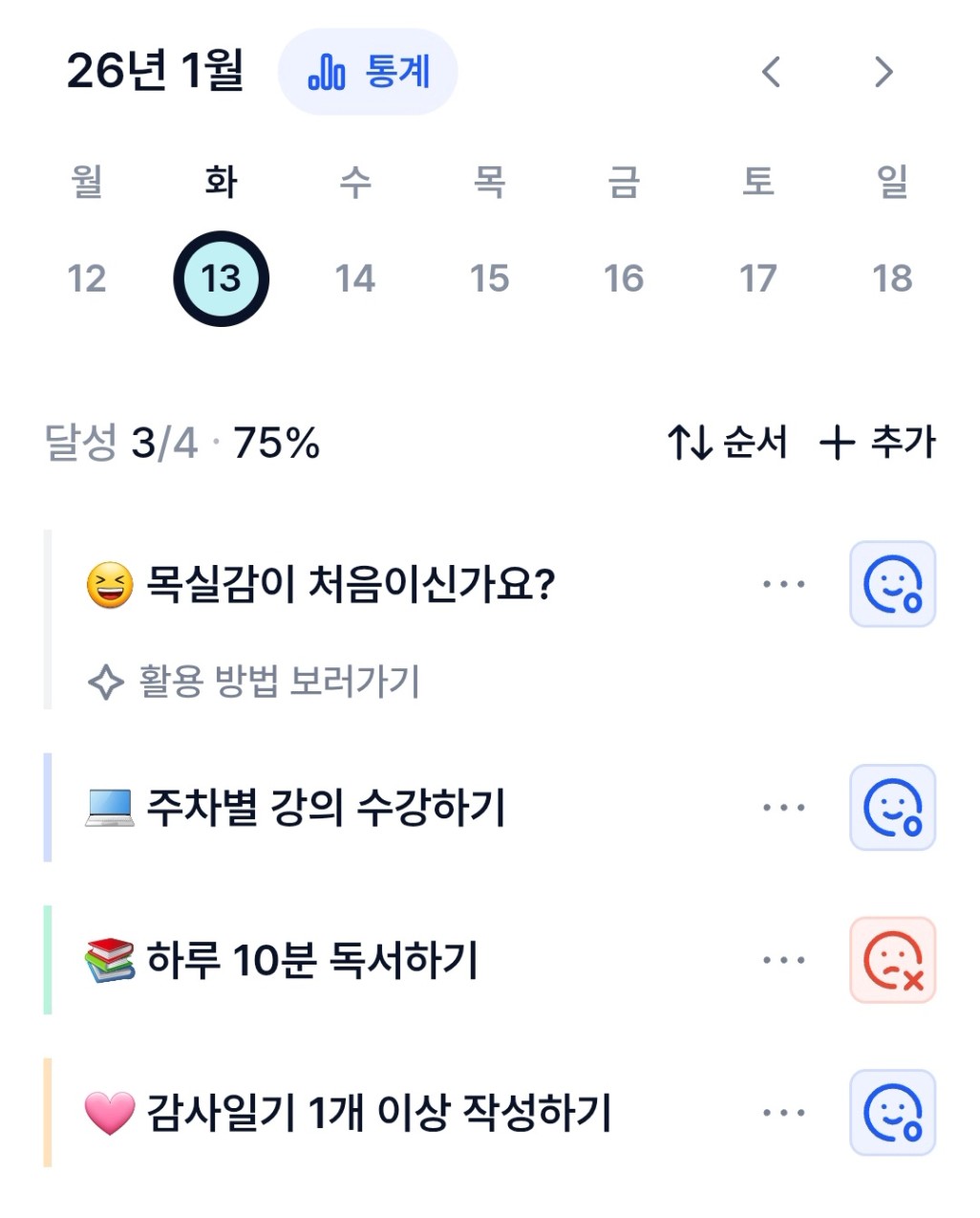 2️⃣ 1주차 목실감 작성하며 어땠는지 소감도 써보기 ✍🏻