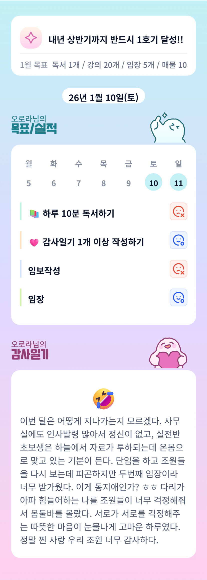 하늘에서 자료가 투하되는데 온몸으로 맞고 있는 느낌 ㅋㅋㅋㅋㅋ 공감100% 하고 갑니다 로라님! 함께 힘내봐요 완료주의!