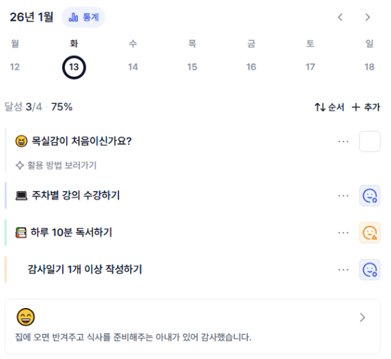 2️⃣ 1주차 목실감 작성하며 어땠는지 소감도 써보기 ✍🏻