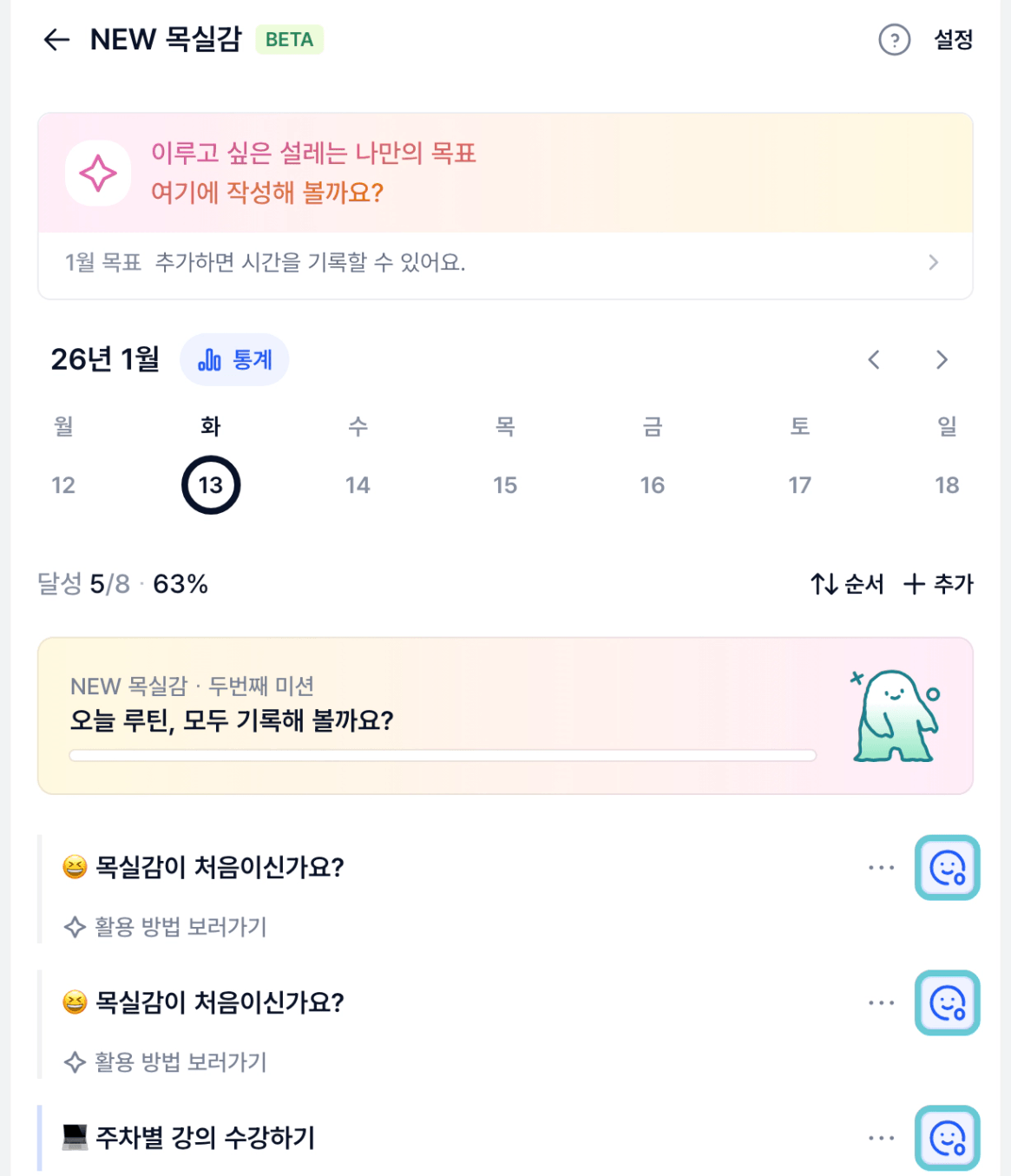 2️⃣ 1주차 목실감 작성하며 어땠는지 소감도 써보기 ✍🏻