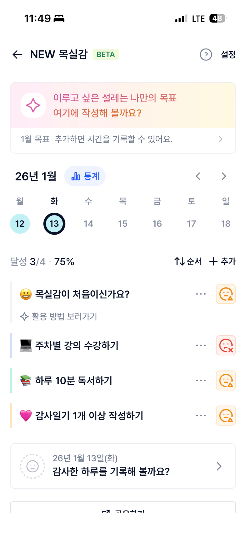 목실감이 뭔지 늦게 파악해서 첫주는 거의 못썼습니다. 다음주부터 꾸준히 써보려고합니다!