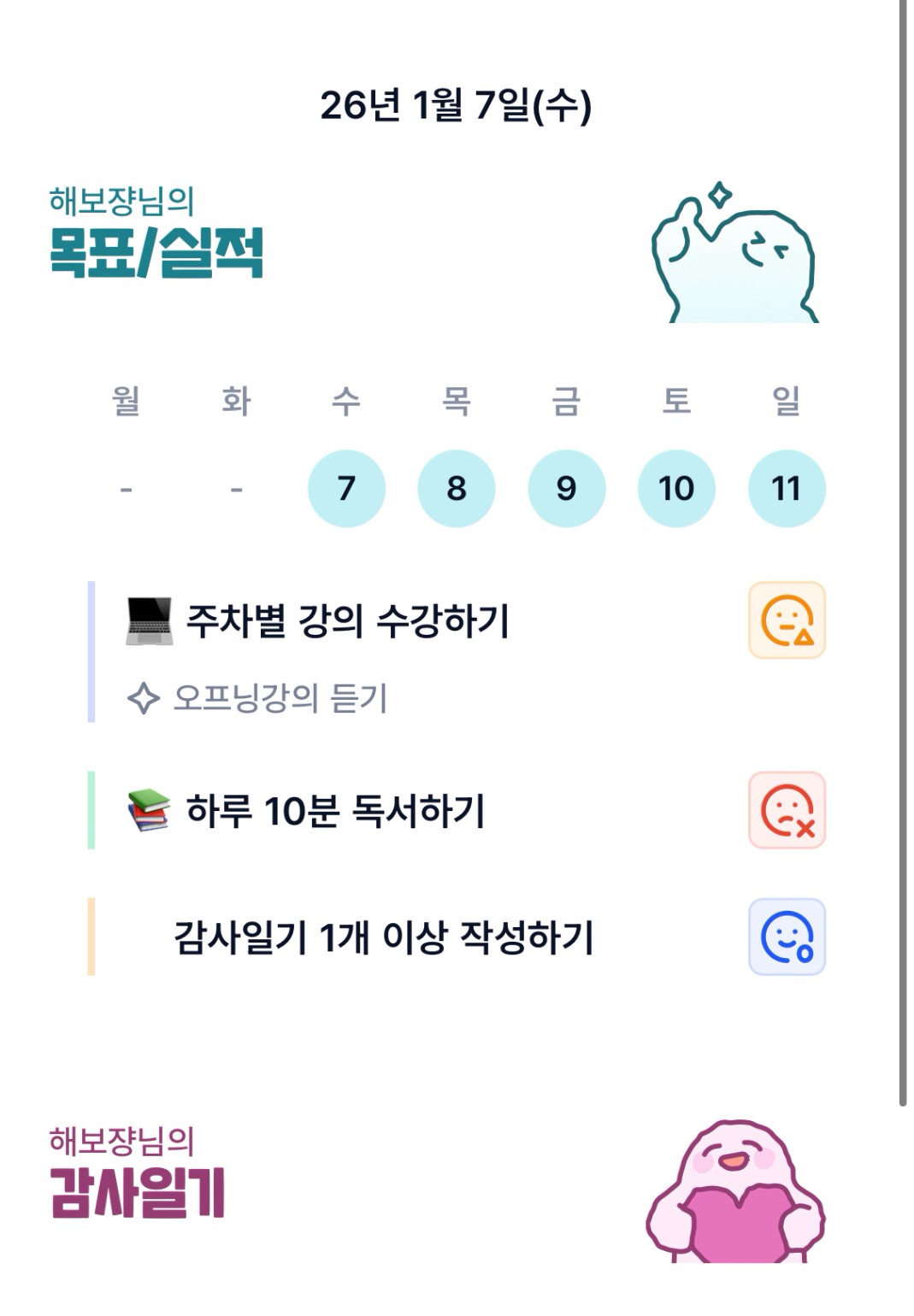 그림으로 O,X 체크하며 오늘 하루를 돌아보니 재미도 있고 뿌듯하기도 합니다.