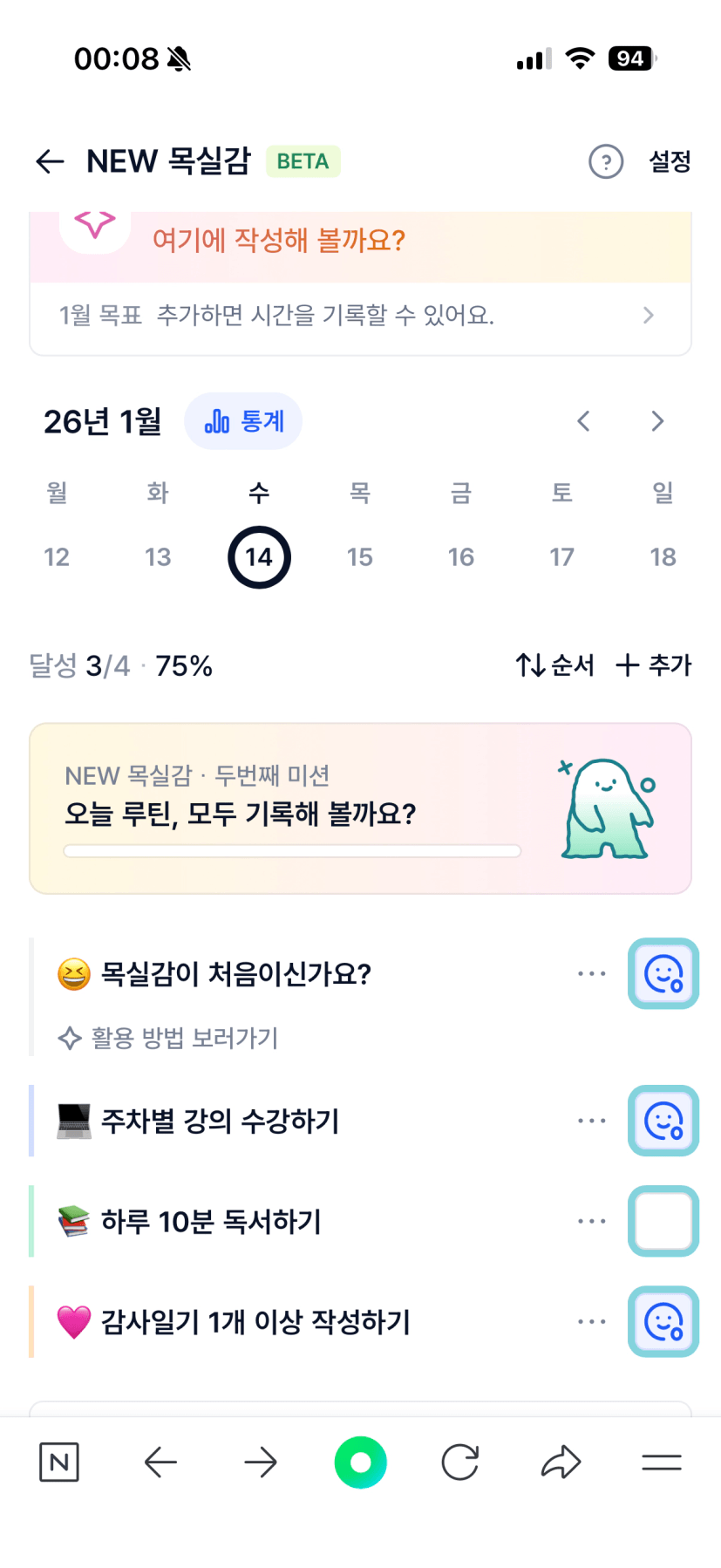 2️⃣ 1주차 목실감 작성하며 어땠는지 소감도 써보기 ✍🏻