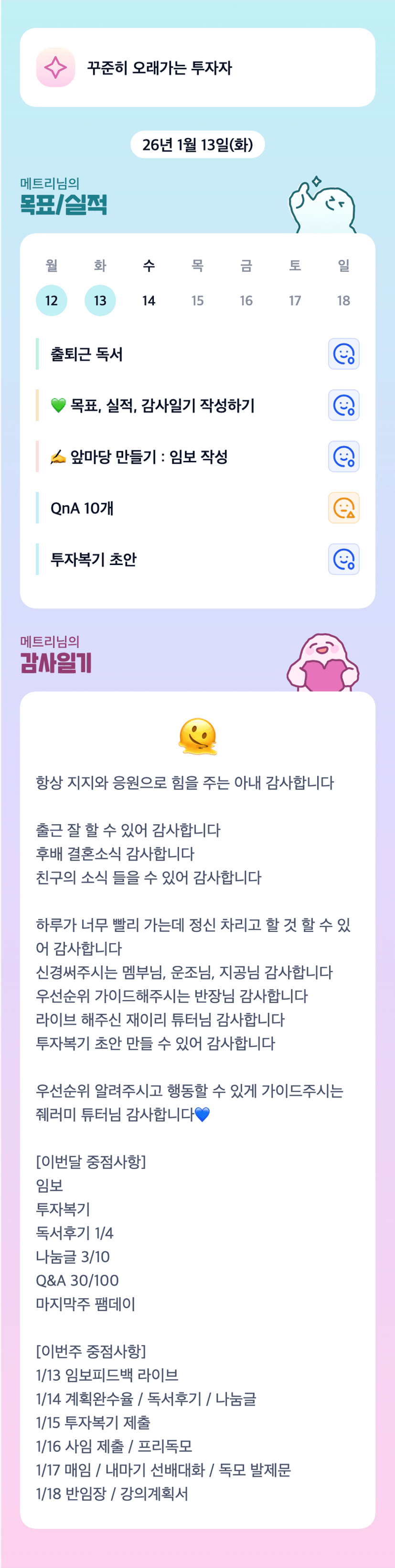 캬아 이 모든걸 다 해내고 계신 트리님 넘넘 대단하십니다!! 항상 응원드려유! 화이팅 아좌좟~~~~~!!